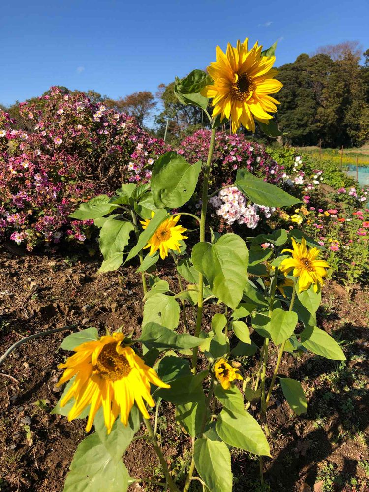 寒くなったと言っても日中は20℃あったりするから、ひまわり🌻咲いちゃうんですね😊💓