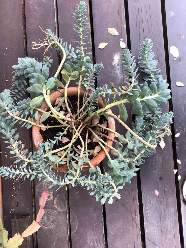 ミルシニテスさんは4月はじめに伸びた葉の先きに黄色の花が何個も咲きそこに種が出来て風で飛びあらっ😳🤭という所から芽が出ます。地植えもあるんです😅