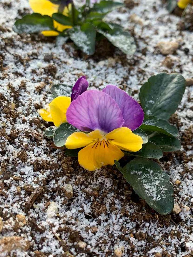 挿し芽にしたビオラさん、雪をかぶっています😃🌿