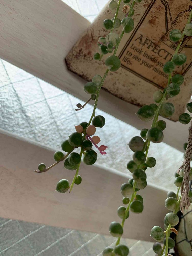 夏に瀕死状態だった斑入りグリーンネックレスにピンクの赤ちゃんが💓