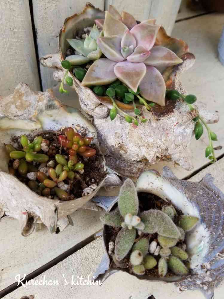 殻のお持ち帰りに多肉🍀素敵🎵