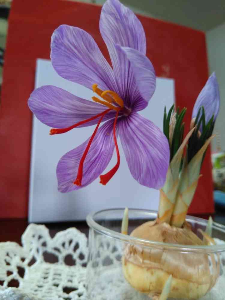 以前母が、サフランお皿に入れ沢山咲かせてました❣️この花があのサフラン!て事も知らなかったし、球根あげると言われたけど、その頃はそんな興味無く