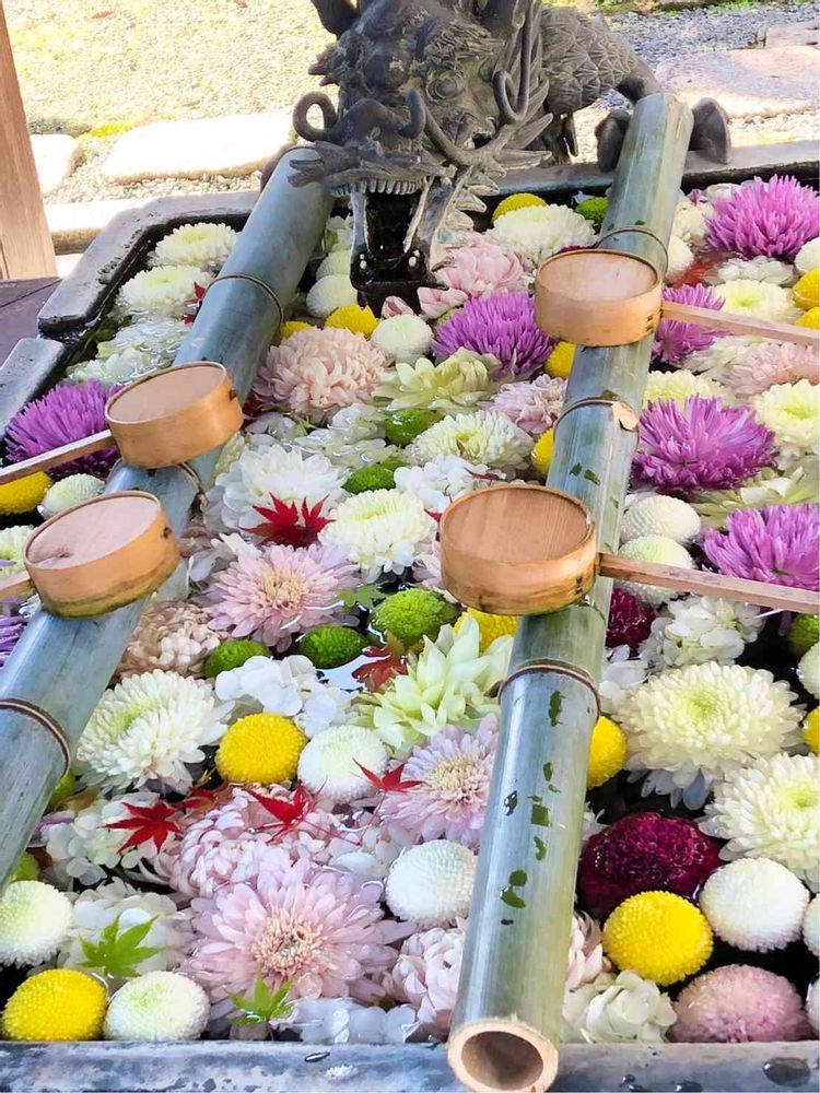 菊の花の花手水なんてあるんですね。