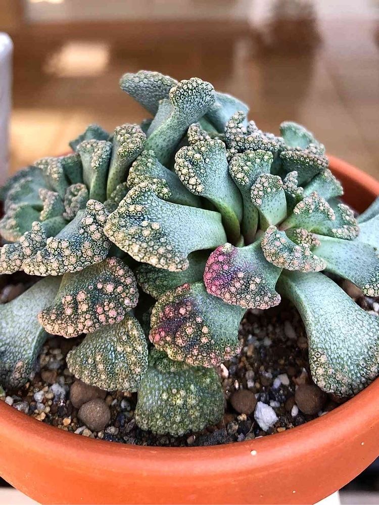 以前、100均で目ざとく見つけたチタノプシス・カルカレア。紅葉しようとしてる?