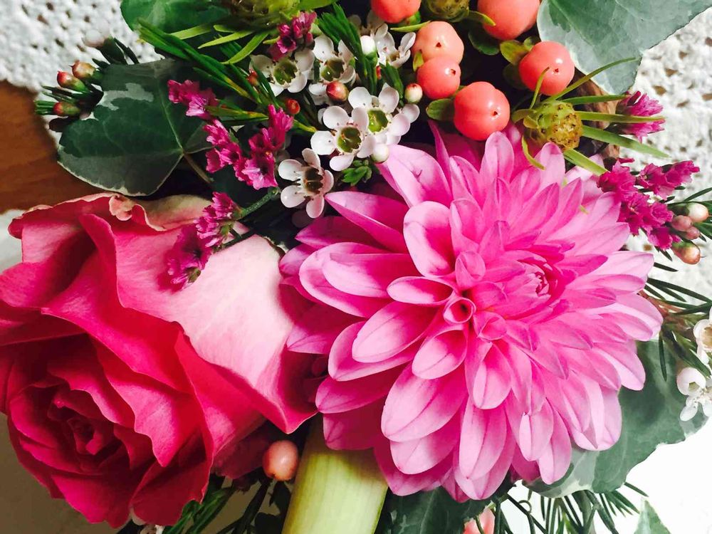 とってもキレイなピンクのお色の薔薇🌹さんとダリアさん(≧∇≦)。