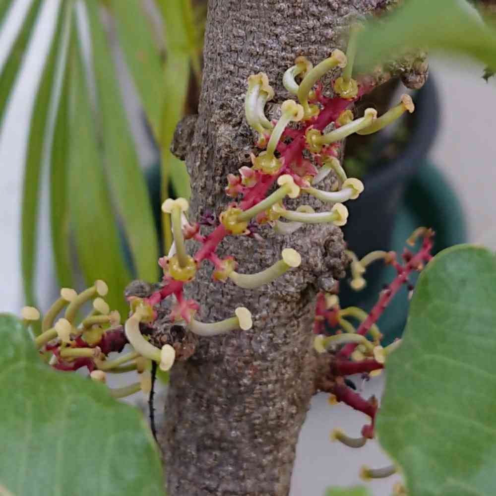 幹に直接花がついてますね。豆がイナゴに似てるの?