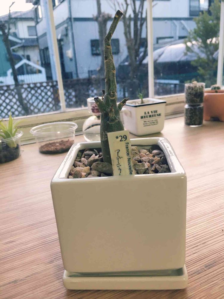 母から誕生日プレゼントにアデニウム?をいただきました🎁お店のお兄さん曰く、休眠中との事です💦早く元気になってくれると良いなぁ…👀🌱