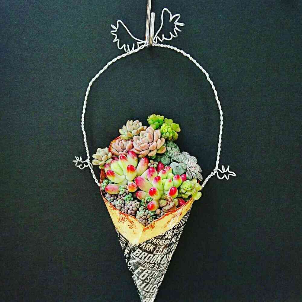 クレープ型のリメ缶に寄せ植えしました😄❤