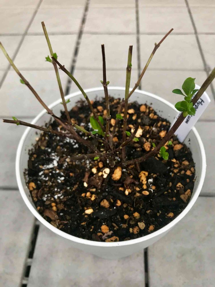 それが一昨日何気なく見たら、枯葉の隙間に何やら緑色のものがっ‼︎ 慌てて枯葉を取り除き、剪定‼︎