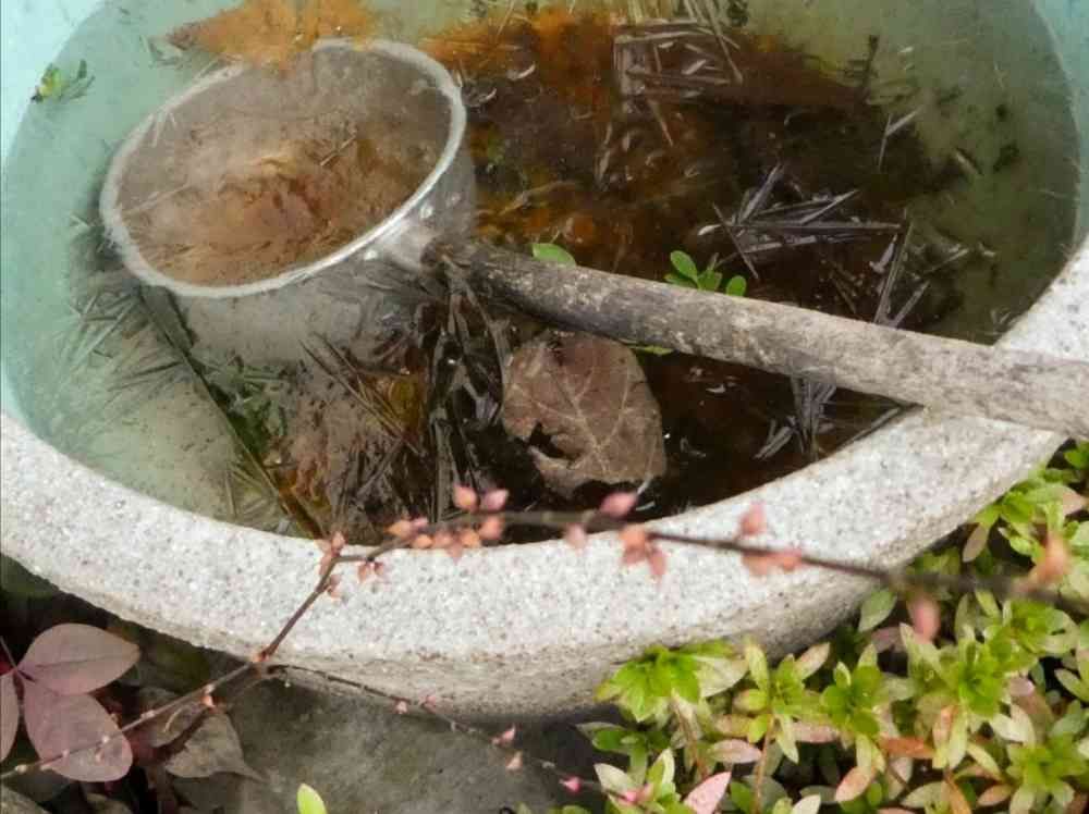 昨日も今日も、あさ水鉢に薄氷が張ってました!