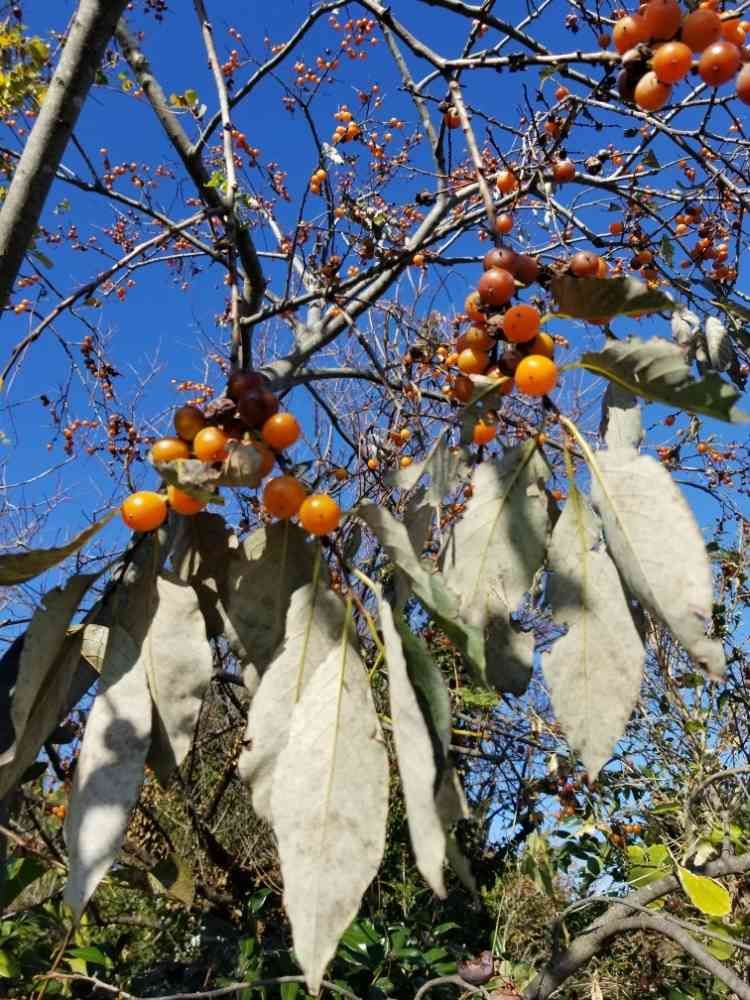 私の見た感じ 柿の隣に有って 大きさに違いは有れど オレンジ🧡の色と 葉の形は 柿❗の様でした でも 柿にしては ブドウのような風情? 触ってはいないのですが 軟らかそうに見えました😅 暫く☔が続くので 見に行けるか解りませんが 皆様にいただいたヒントを頭に もう一度 確かめてきますね❗ 今暫く 結論は待ってくださいませ🙇