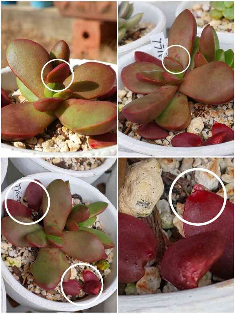 昨年おまけでもらった葉っぱ1枚から育ててる子です💕意外と可愛くてお気に入り😍面白いことを発見したのでお披露目🎶「○」で囲んだところにご注目🤭