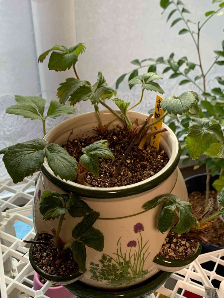 春に植えたイチゴから増えたランナーを鉢に植えました❗️🌱🍓😊