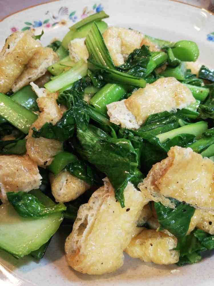 今日収穫した小松菜とチンゲン菜の炒め物(*ˊᵕˋ* )