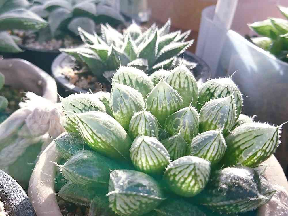 ゴツゴツとした葉表に対して葉の1つ1つが丸く先端の尖りがピンとしているとても個性的なハオルチアですね🎵よく見ると葉の窓の透けているところにツンデレさを感じます(笑)