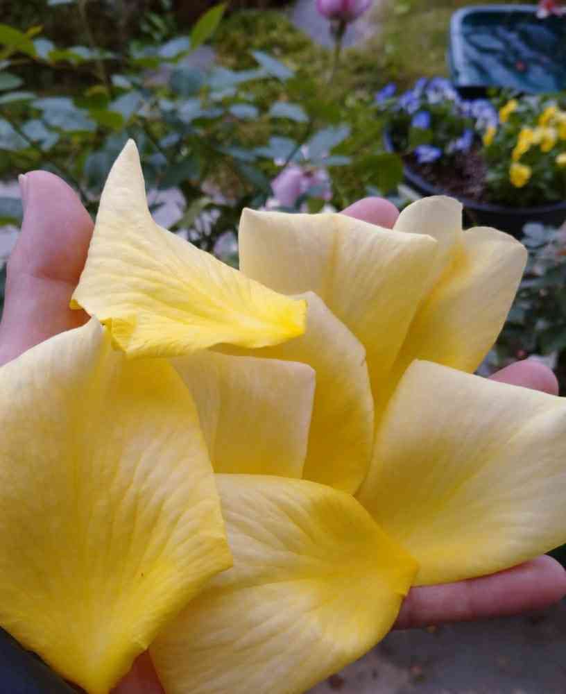 16日投稿の大輪の薔薇フリージアが今日まで咲いてくれました。寒くなったからなのかピークから7日間も咲いてくれたのでバラして撮りました✨捨てるのもったいないです。
