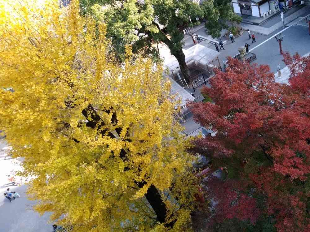 祐徳稲荷神社の境内から見下ろすと、大きなイチョウの木と紅葉🍁のコントラストが綺麗✨