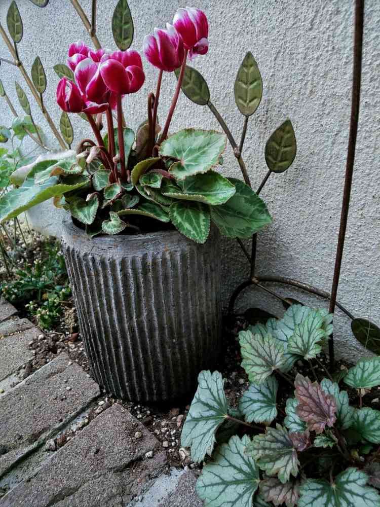 去年はここに地植えでガーデンシクラメンを育てたのですが高さが欲しくて今年は鉢植えに🎵