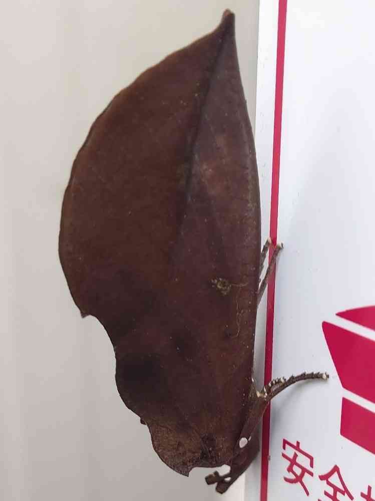 2日前から消火器案内板に枯葉がくっついてるなぁと思ってました。