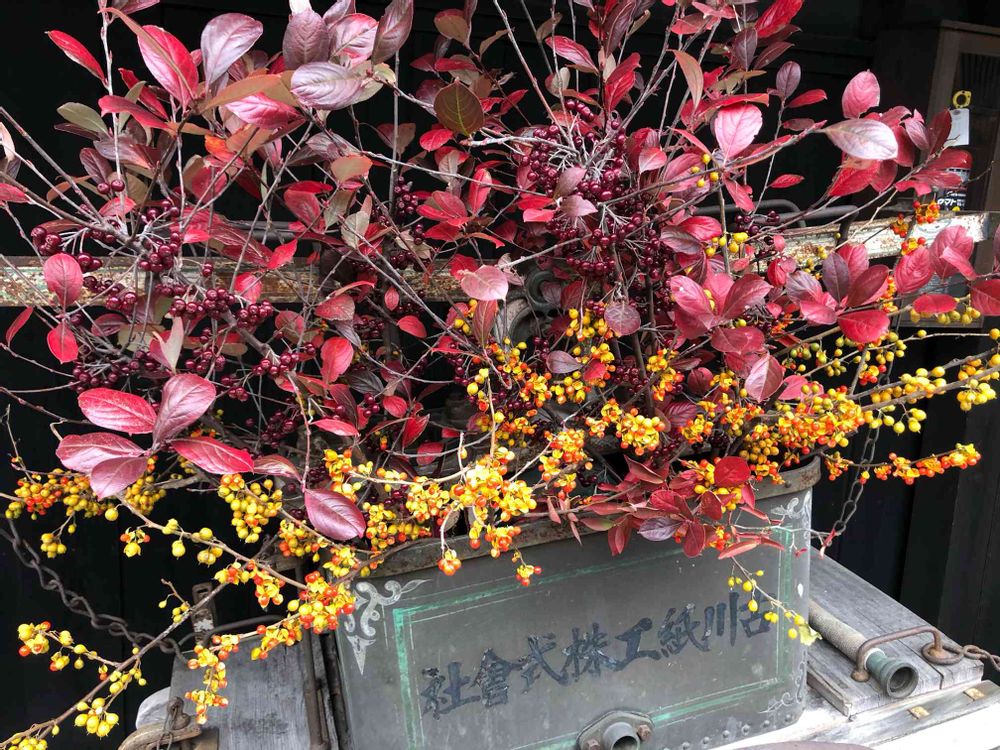 赤い実とオレンジ色の実が素敵に飾ってありました。