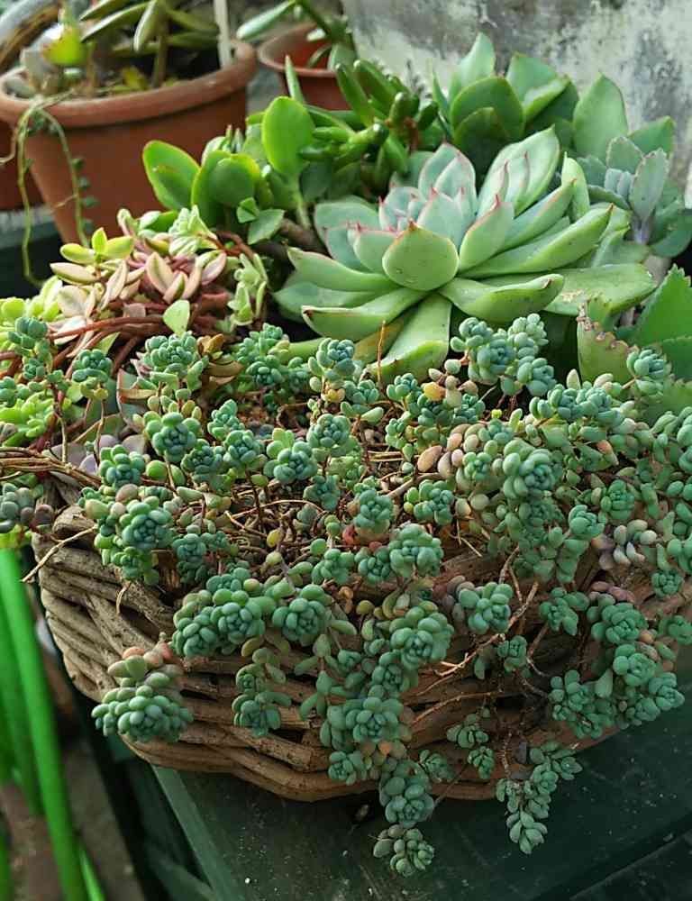 多肉のカゴ寄せを、寄せ直しました。