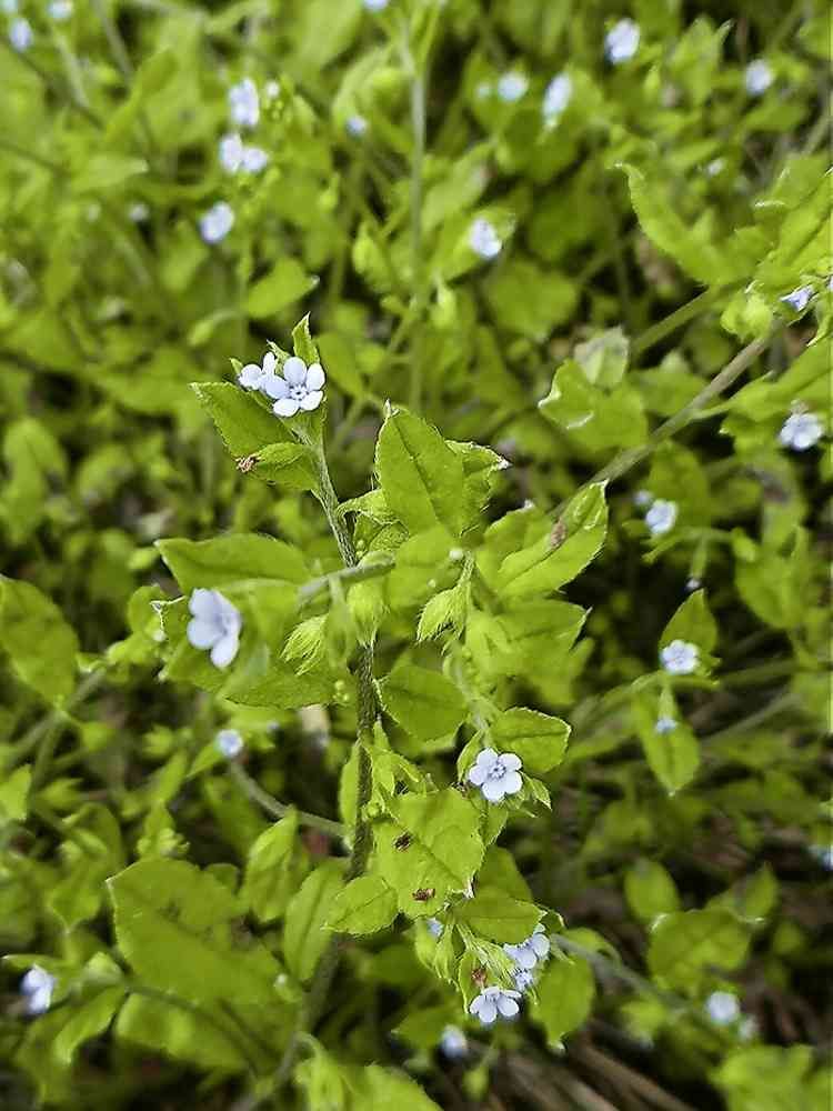 畑の周りや道端などに生えるムラサキ科ハナイバナ属の2年草。花期が3~11月と長く厳冬期以外咲く。花冠は淡青紫色で直径は2~3㎜。
