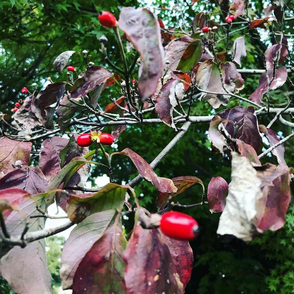 犬の散歩コースで見つけたハナミズキの赤い実☘️