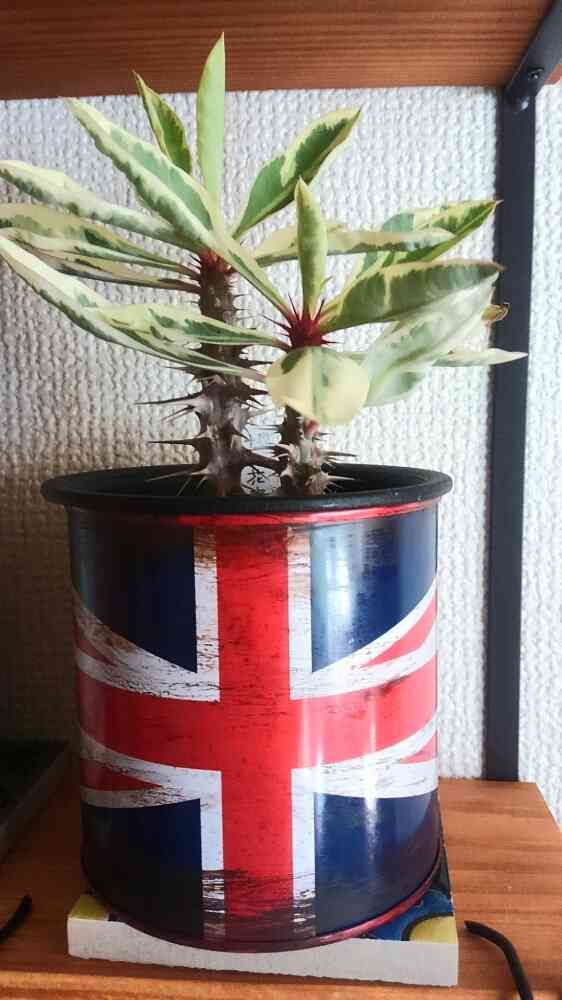 ユーフォルビアやコーデックスが好きな彼のために買ってきた花キリン錦。買ってきた鉢のまま100円リメ缶にすっぽり。ジャストサイズ(*^^*)b