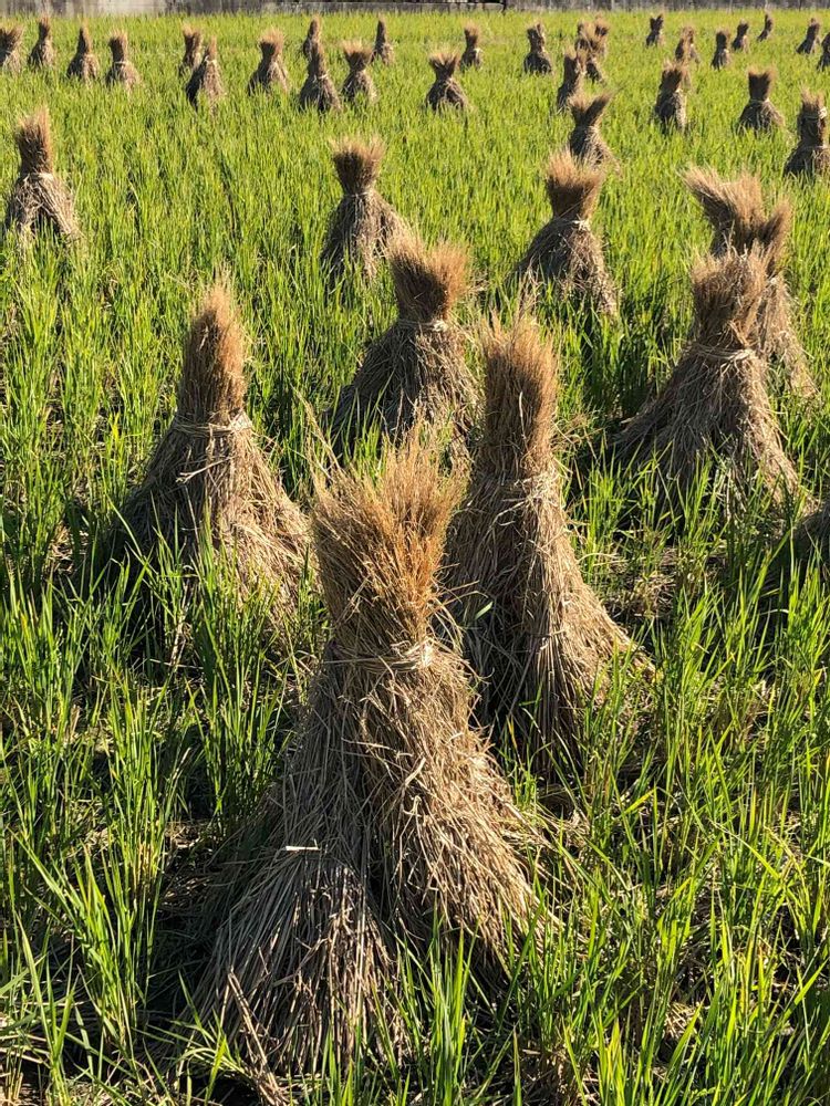 手間の掛かる作業ですが、コンバインを使わないで稲干しをした方が、お米が美味しくなるそうです☺️藁も処分せず、利用しているんですね❗️