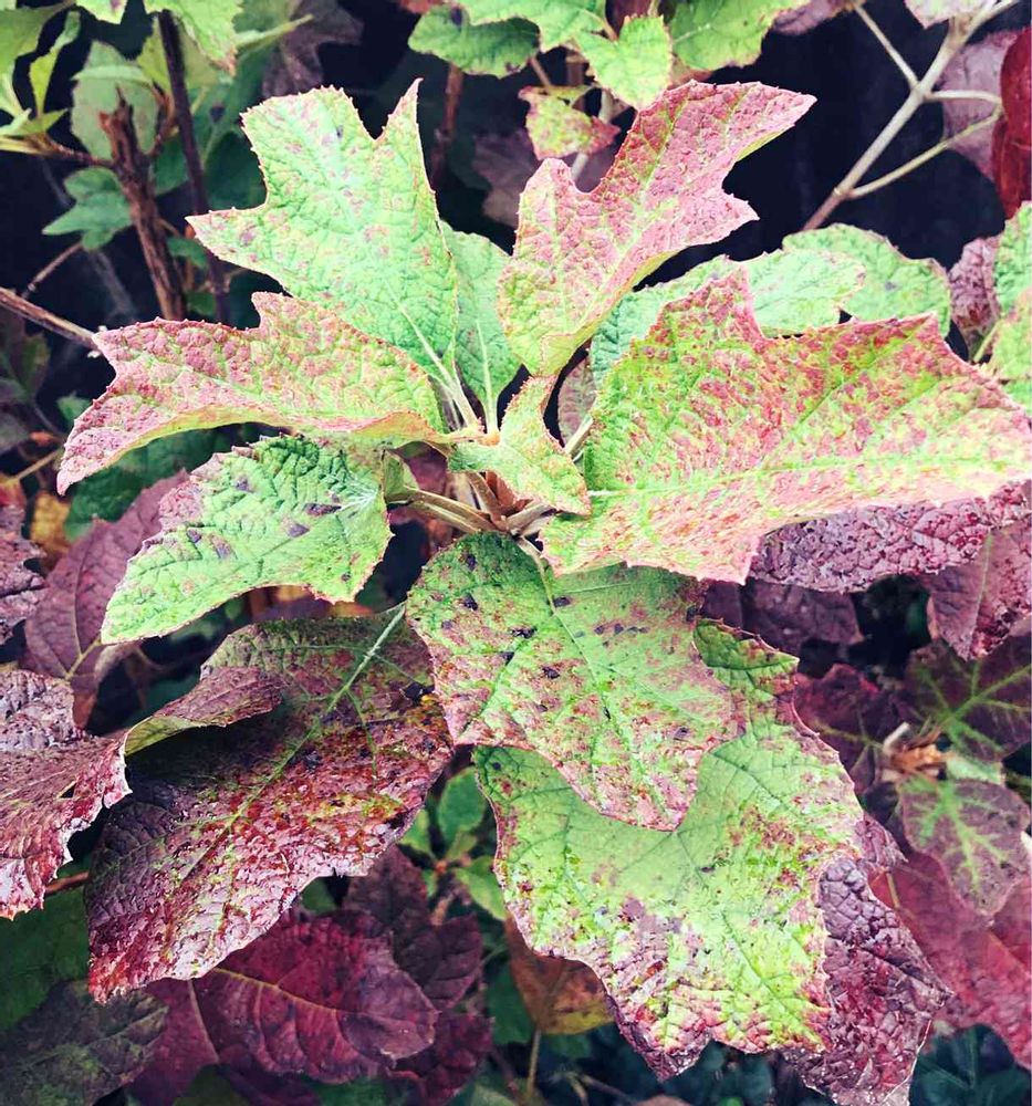 カシワバアジサイの葉っぱ🌿この微妙な色合い…GSをやっていなかったら、気づかなかったかも🍁