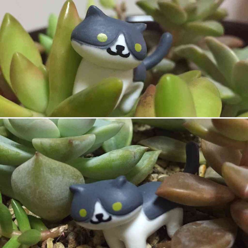猫あつめフィギュアって多肉に凄く似合うのね〜🎵( *´艸`)