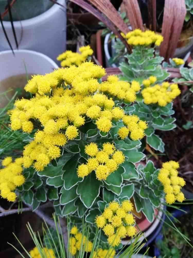 こんばんは😊 イソギクの仲間で 金と銀という花ありますよ 花が黄色で葉が 銀色なので ゴールド&シルバー 金と銀 と呼ばれているそうです 菊のミモザか アジャニアパシフィカで 検索してみてくださいませ🤗