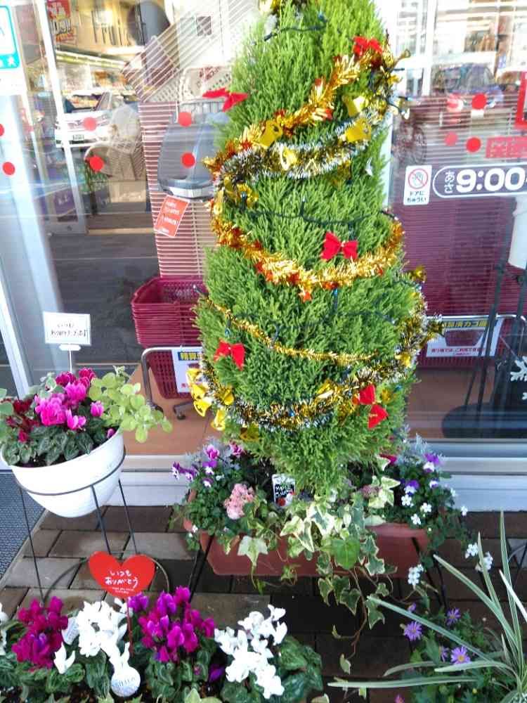 近所のスーパーの入り口(*˘︶˘*).。.:*♡クリスマス🎄ツリー😁♫💖