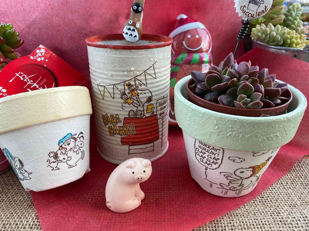 スヌーピーの鉢と缶可愛い過ぎです(●) ’ ` ・)
