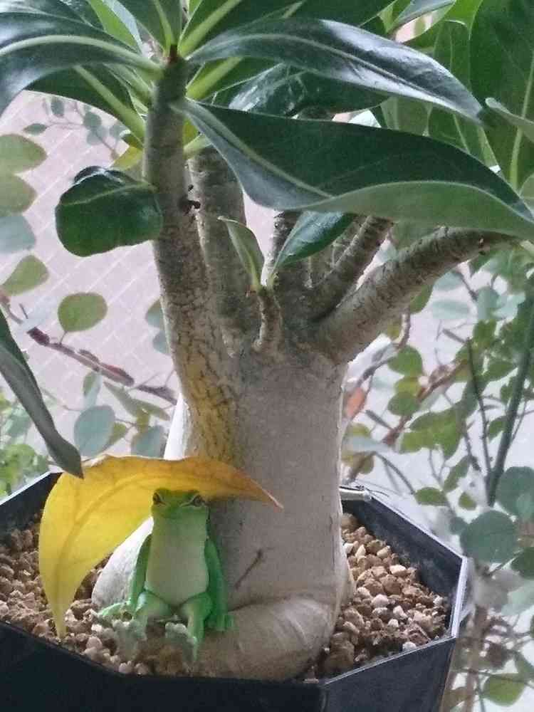 アデニウムのあぐら?の上ですっかり和むカエル🐸さん💕
