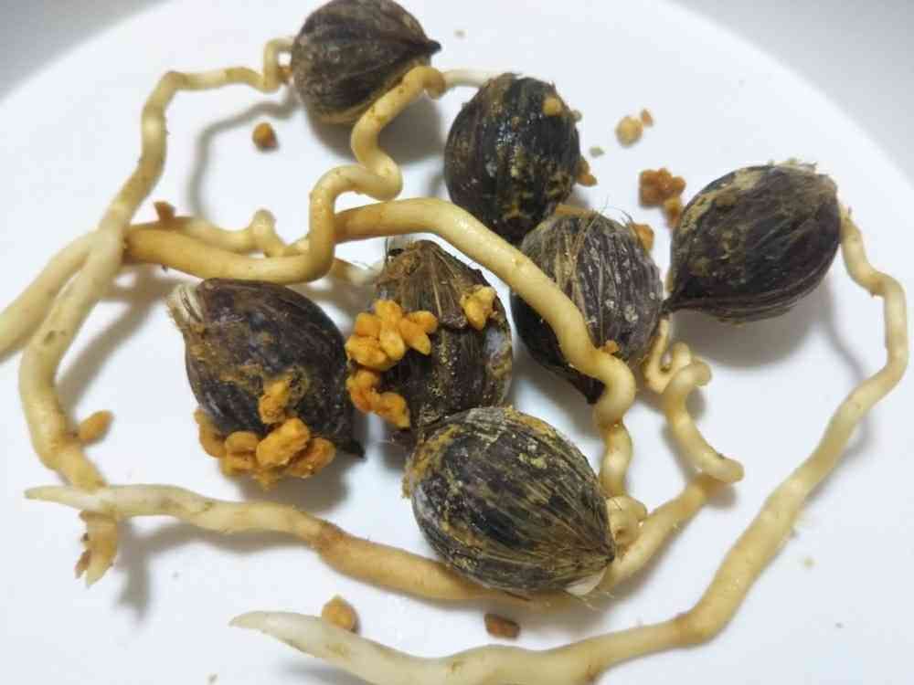 拾ってそのままの状態ですと赤い果皮がついているかと思いますが、カビや虫の発生原因になりますので全て除去して種子のみにしてから水洗いしてぬめりを取って下さい。