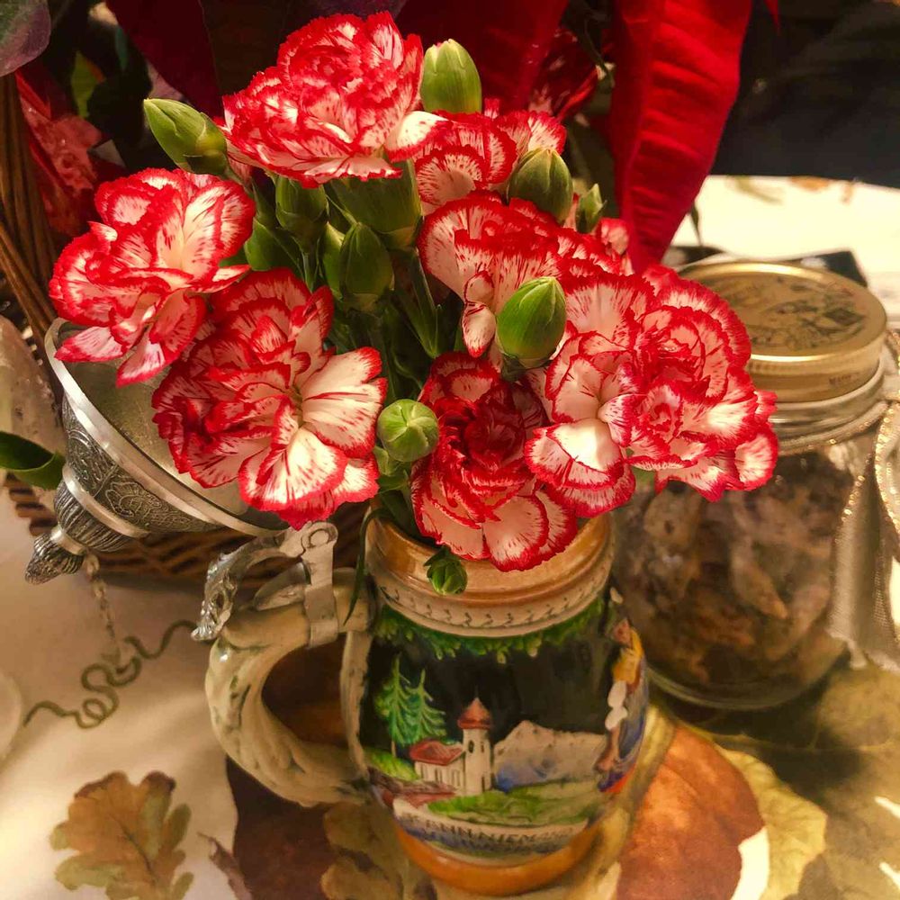 Trader Joe’sのスーパーでは4ドルで大きな束が買えます本当はスプレーバラが欲しかったけど、完売のため、この季節を意識して赤の入ったちょっと変わったカーネーションを購入💓
