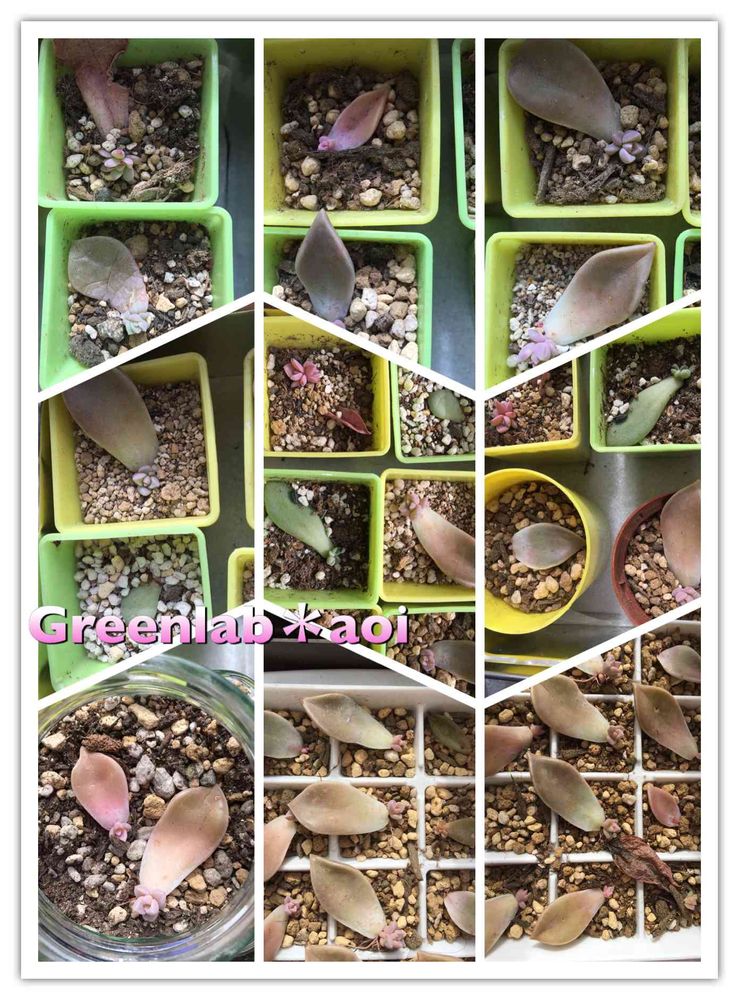 実験的にこの間植え替えた我が家の葉挿しッコ達を陽のあたる窓辺に並べてみました❣️