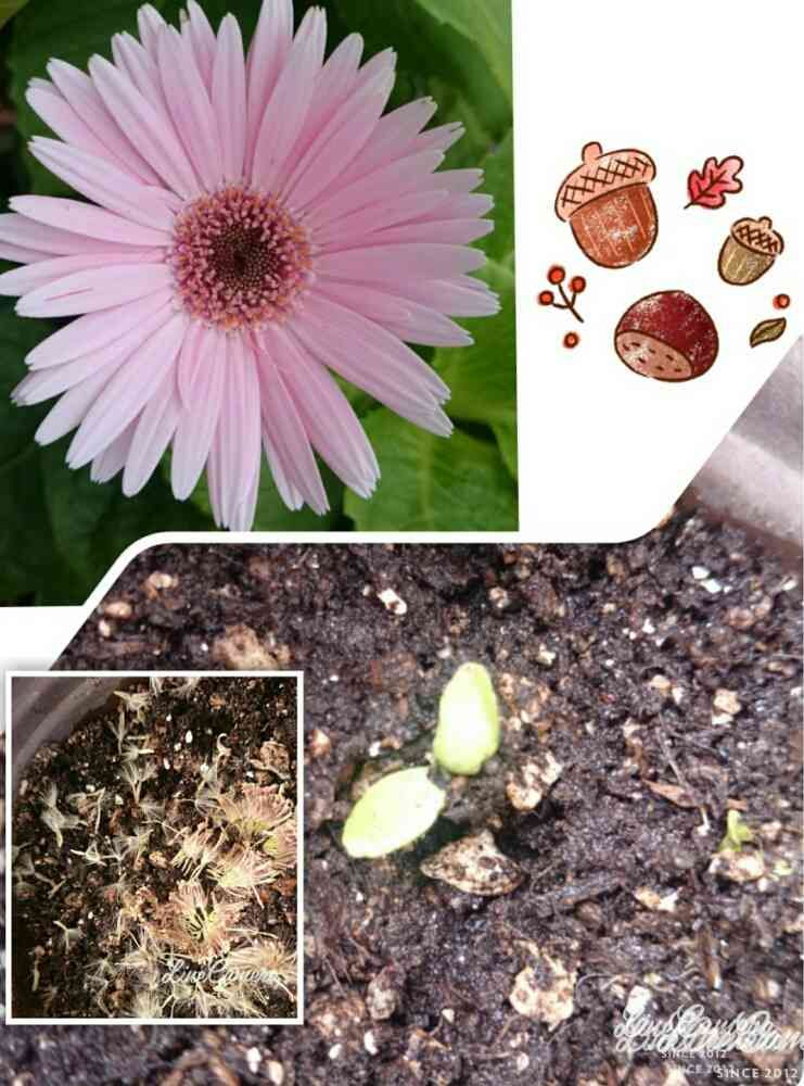 今年咲いた我が家のガ―ベラさん🎵綿が着いて種がびっしり…こんなに無造作にばら蒔いただけなのに発芽してました。