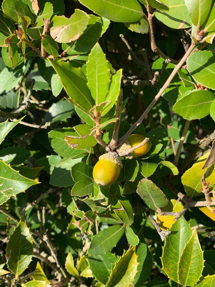 葉っぱはヒイラギっぽく、実はドングリ😊