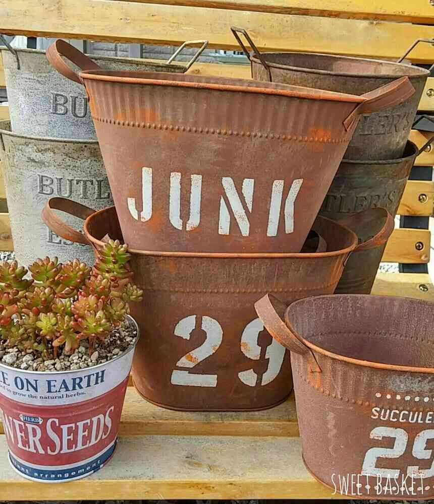 今日は、先日入荷した錆び風のブリキポットに、ステンシルしてみました๐●ᴗ●๐♡