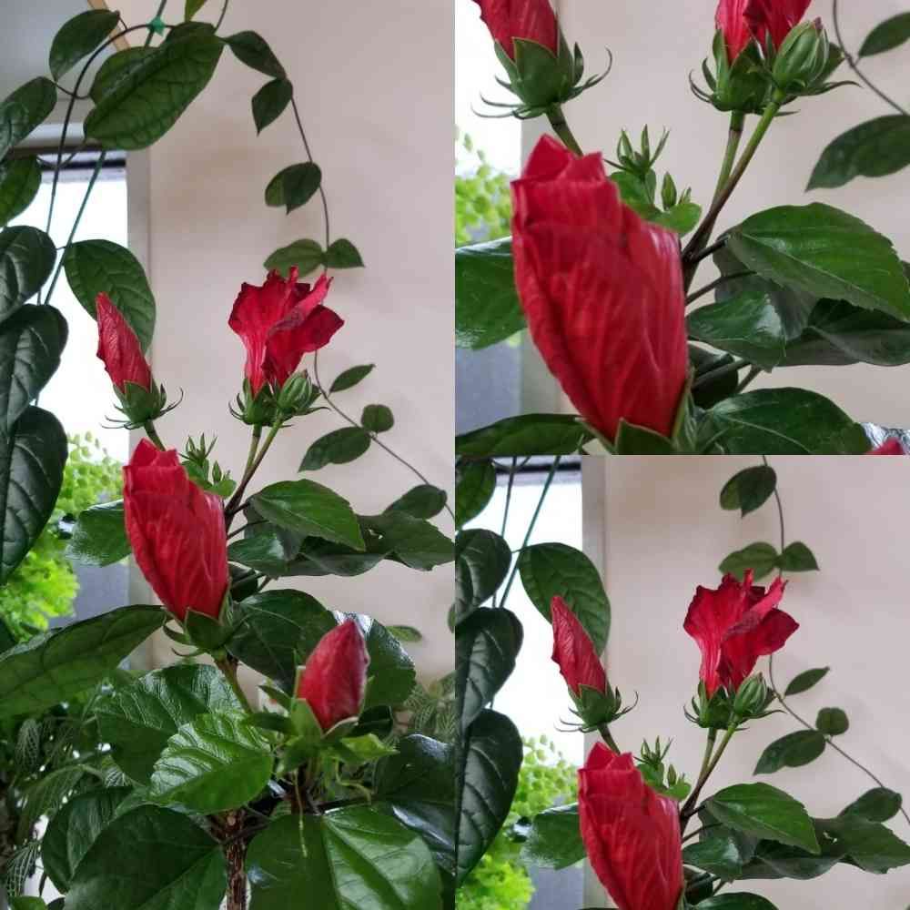 最初の花は、萎みましたが、真っ赤な蕾が、ふっくらしてきました。