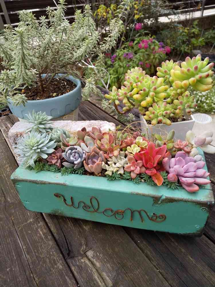 naachanのプランターに色とりどりの多肉ちゃん、かわいい寄せ植えになったね〜😍