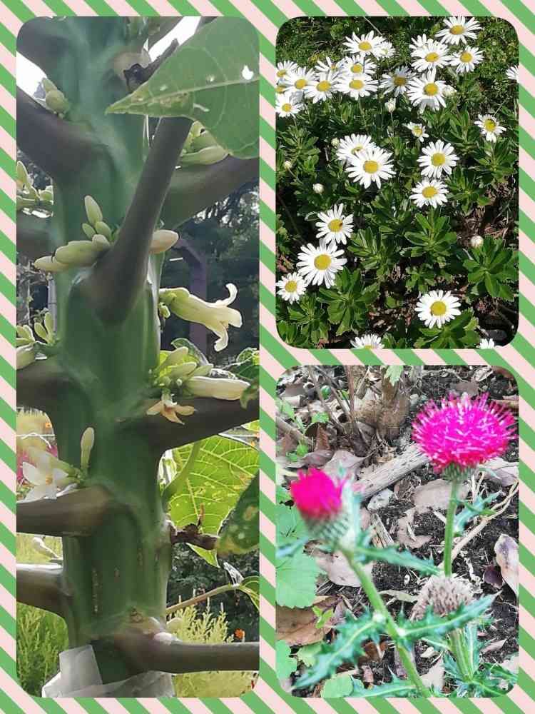 パパイヤが露地(ボランティア花壇)でお花を咲かせるなんて驚き❣️