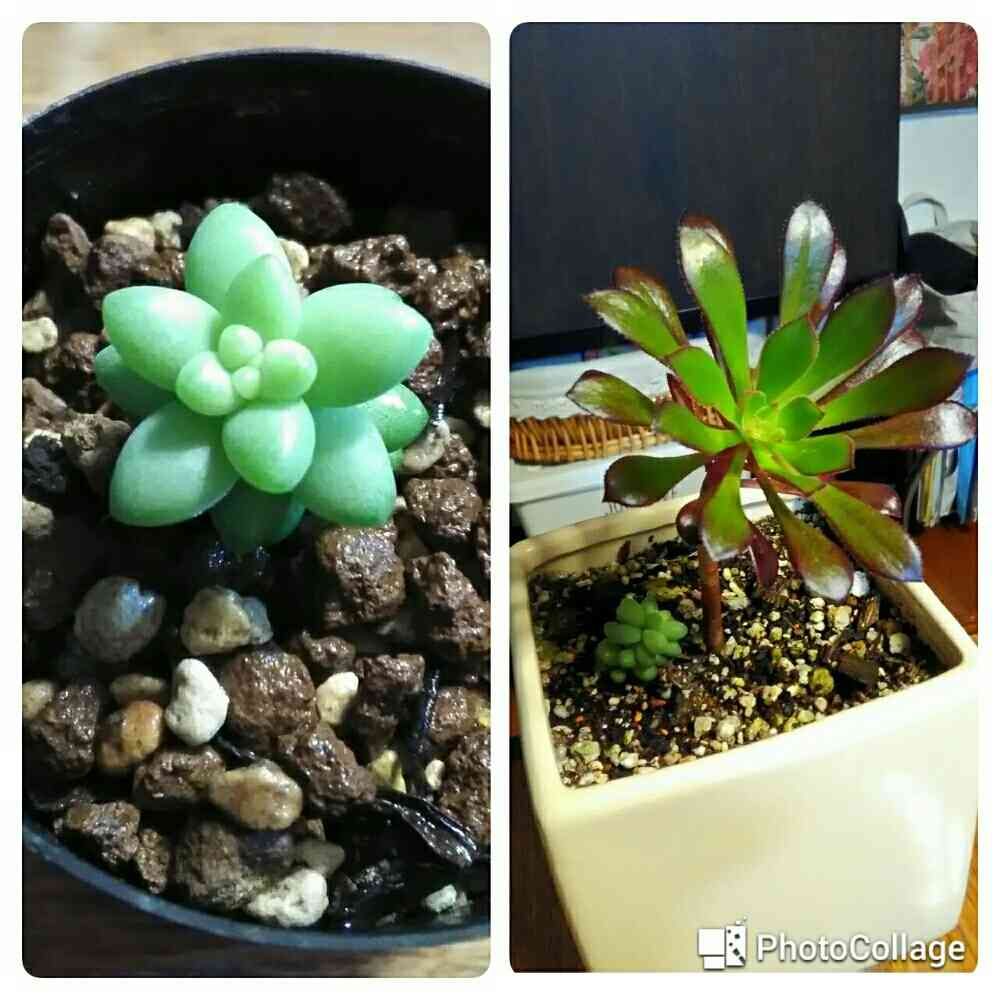 黒法師鉢に、突然現れた多肉ちゃんがスクスク育ちました。