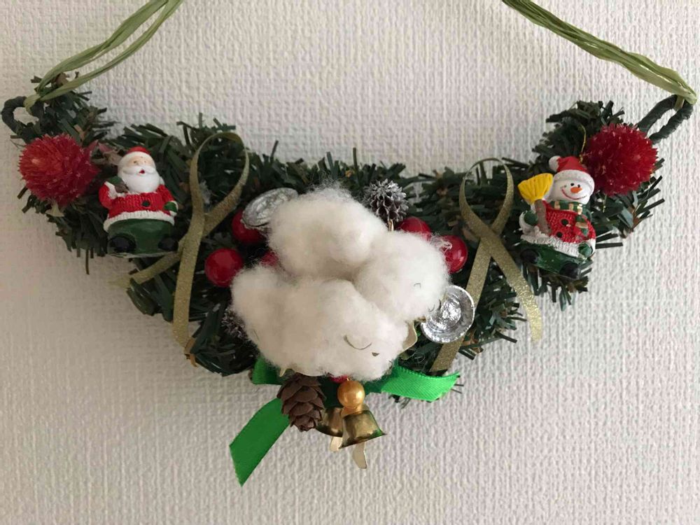 後はウチにあったコットンやセンニチコウ🌸・木ノ実などを貼り付けてクリスマス飾り🎄出来ました❤️