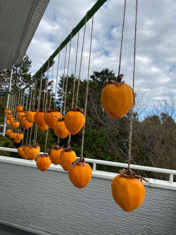 干し柿楽しみだね😋私もいま吊るしてるんだ。カビが生えないか心配だったけどあと一息今年は成功しそうなんだ。雨に濡れるとまずいから新聞紙かけたりしてるよ。