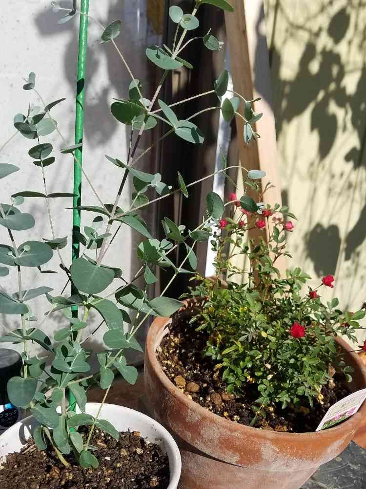 我が家に新しく来たユーカリさんと姫バラさん。