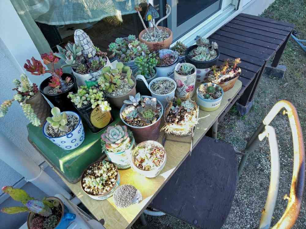 多肉の勉強机を南側に1メートル移動🤣奥の椅子と入れ換えただけ😝それでも少し☀️が当たるように😆