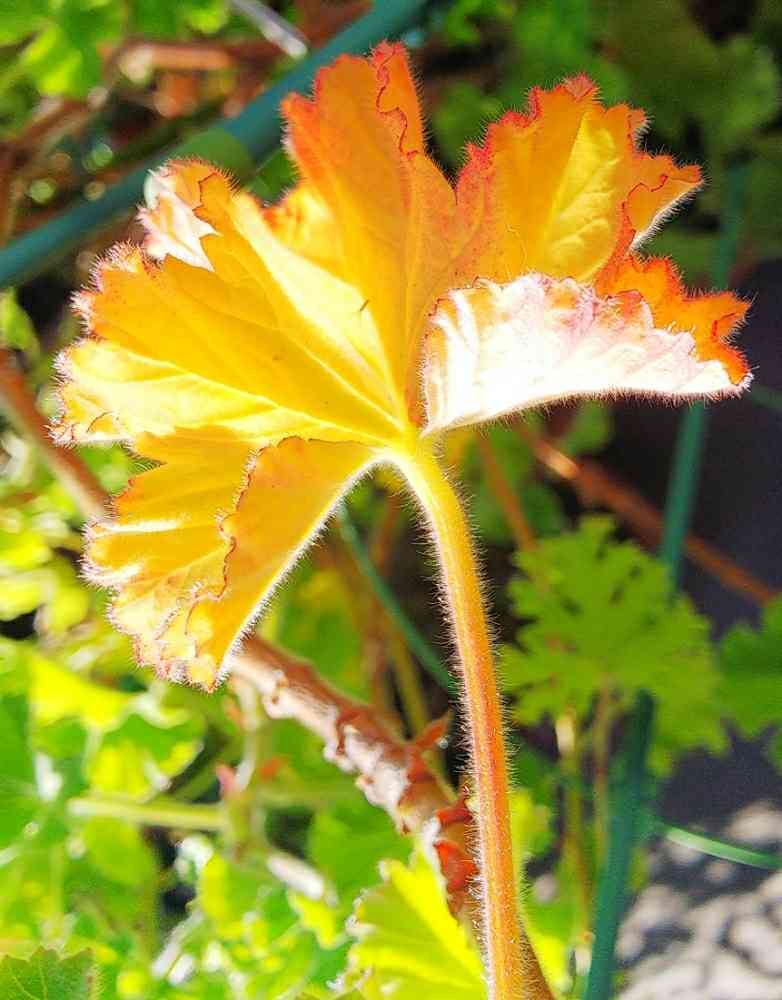 ゼラニウムの葉は、黄色くなって落ちる前に取ってしまいますが、この子はエエ色してて。